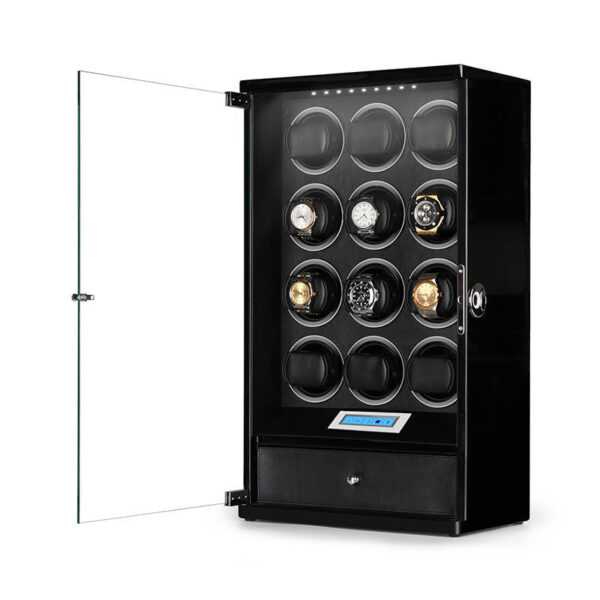 12 Wooden Watch Winder Box for Rolex with 1 Storage Space – Black