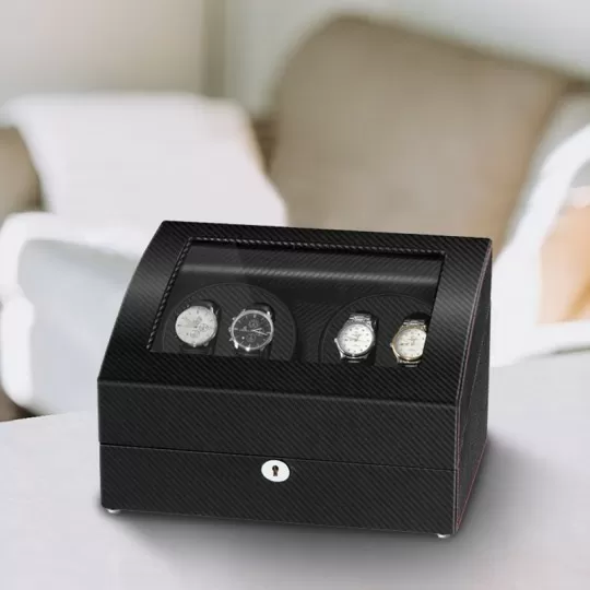 4 Watch Winder Box With 6 Watch Storages – Carbon Fiber Style