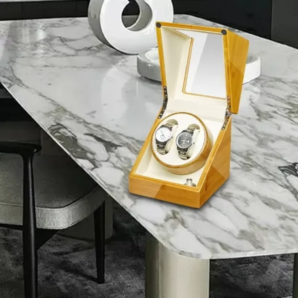 Double Watch Winder With Quiet Motor – Bamboo