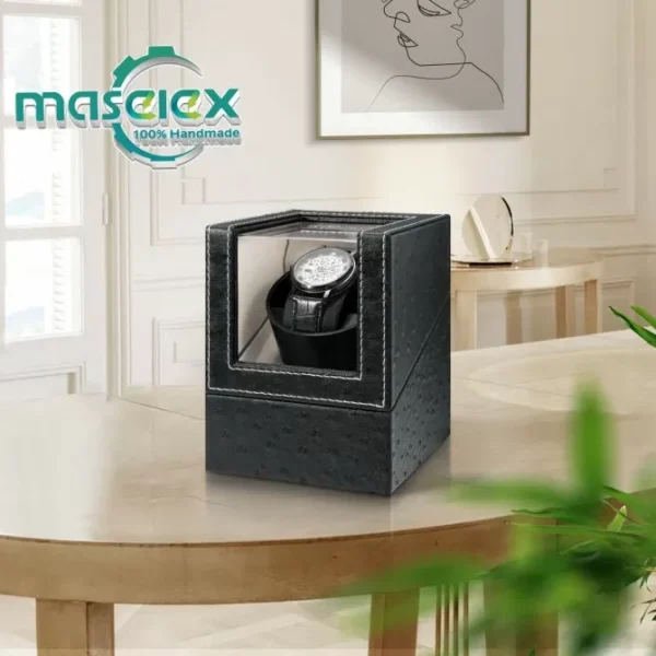 Buy Maselex Single Watch Winder with Black Leather Shell on Single Watch Winder from , reliable online watch winder store.