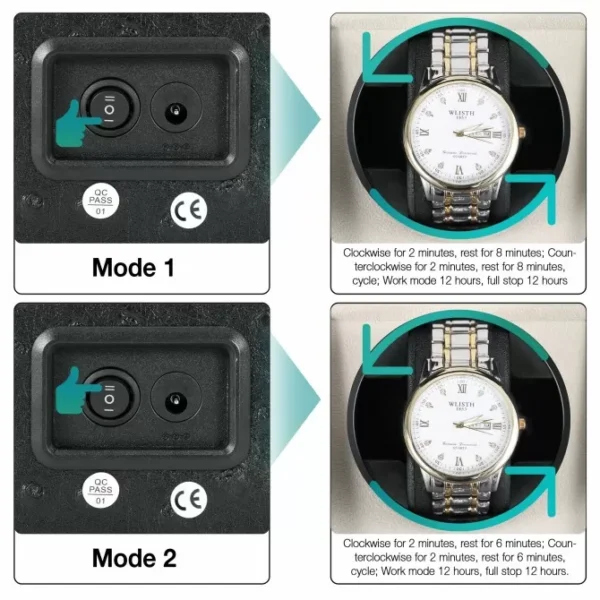 The internal motor adopts a closed design which can separate it from watches so that watches can not be magnetized and influence the time.