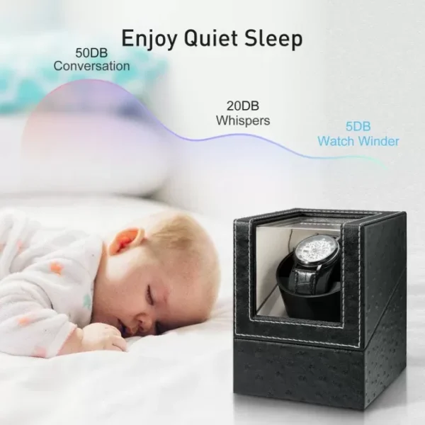 This watch winder uses high-quality Japanese upgraded Mabuchi motor which is a well-known brand to make precision motors. These motors control noise under 10db that even though you put it in your bedroom it can also offer you an extremely quiet experience.