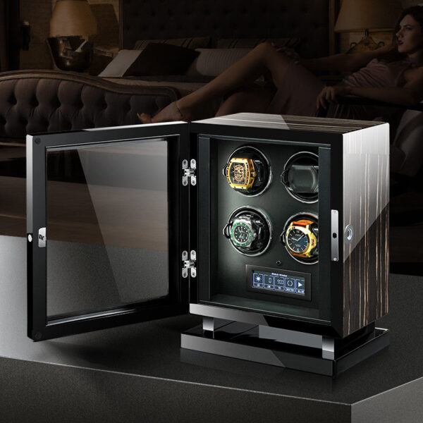 Premium Smart Quad Watch Winder – Striped Ebony Wood