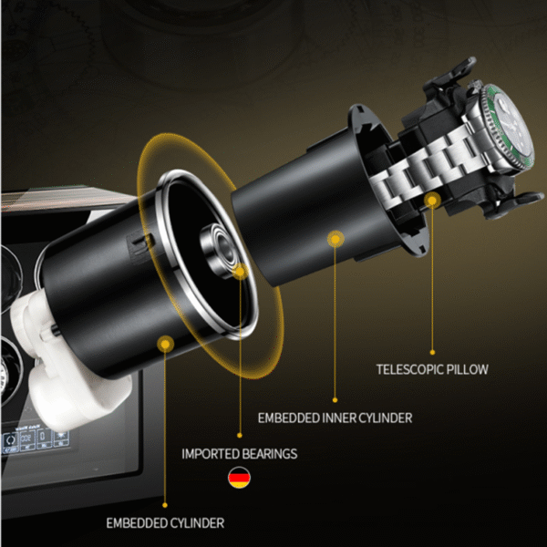 The automatic quad watch winder accommodate watches of all sizes effortlessly with the versatile retractable pillow.