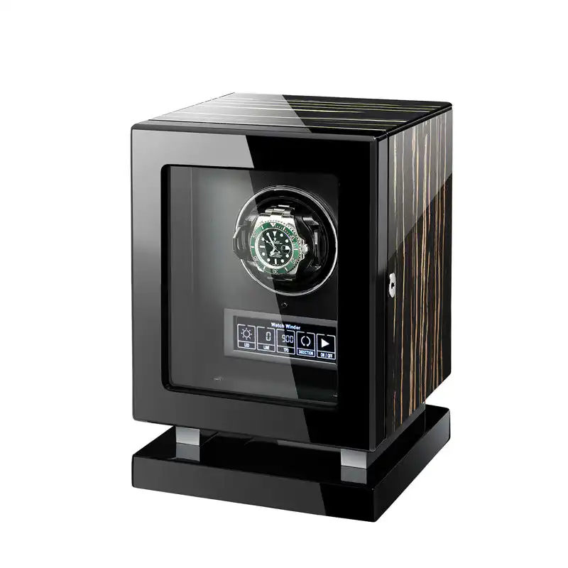 Premium Smart Single Watch Winder – Striped Ebony Wood