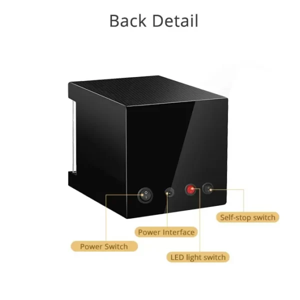 ● LED Light——There is a LED light switch at the back of the watch winder which can control the light. When you turn on the light you can see your watch more clearly at night.